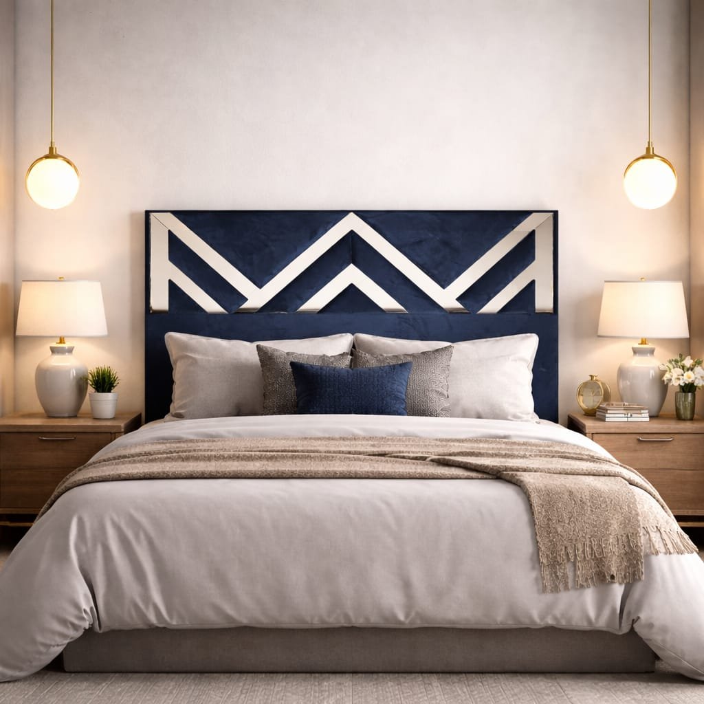 Dale a tu habitación con nuestro espaldar de lujo fabricado en madera de pino de alta calidad, combinado con vidrio (espejo) natural templado. Medidas: Alto 140 cm × Ancho 147 cm × Espesor 9 cm. Diseño vanguardista, elegante y contemporáneo, ideal para camas king o espacios amplios que demandan sofisticación y sutileza de buen gusto.