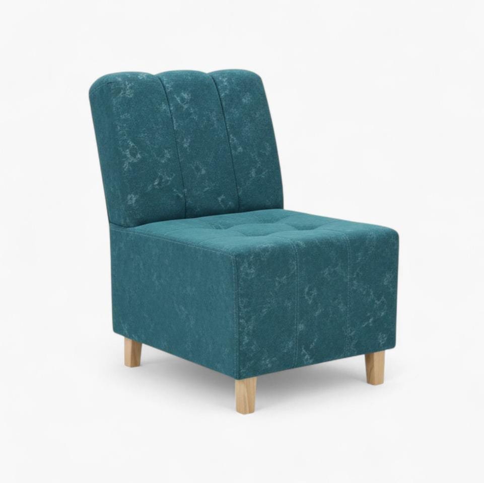 Materiales: Estructura en madera de alta resistencia, patas macizas en Madera de Pino con acabado natural, espumas de alta densidad para máxima resiliencia y tapizado en tela técnica antifluido de alta calidad.